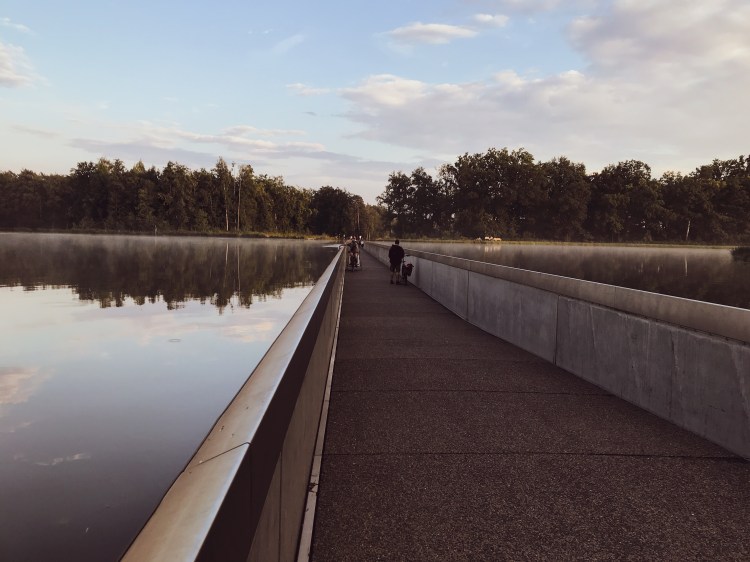 La passerelle qui traverse l’eau est située dans le domaine de Bokrijk (où il y a 1000 activités nature à faire).