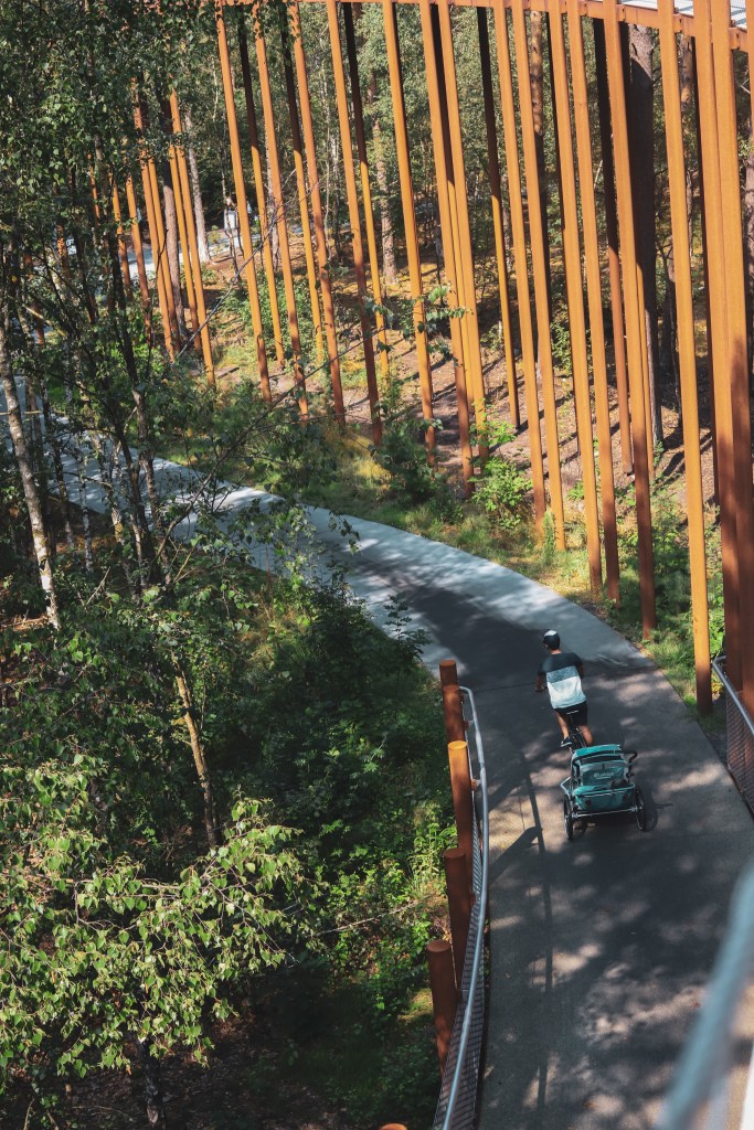 Dans les bois à proximité de Lommel, la piste cyclable s’élève à plus de 10m du sol et vous emmène dans les arbres.