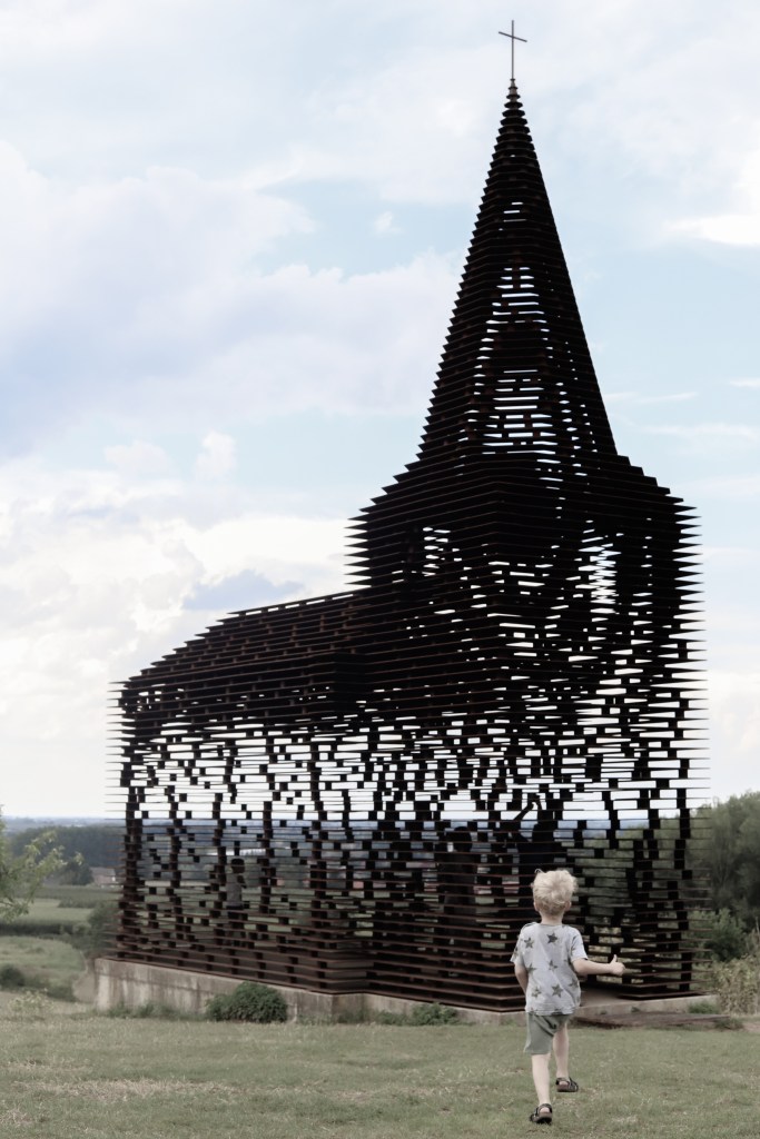 Ne suivez pas le gps en voiture, une fois dans le village : il voudra vous faire emprunter les pistes cyclables jusqu’à l’œuvre d’art. Et les locaux n’apprécieront que moyennement. Garez-vous à proximité de l’église de Looz et empruntez le sentier à sa gauche. De là, suivez le sentier et ouvrez les barrières en bois pour accéder à l’église transparente. Amen.