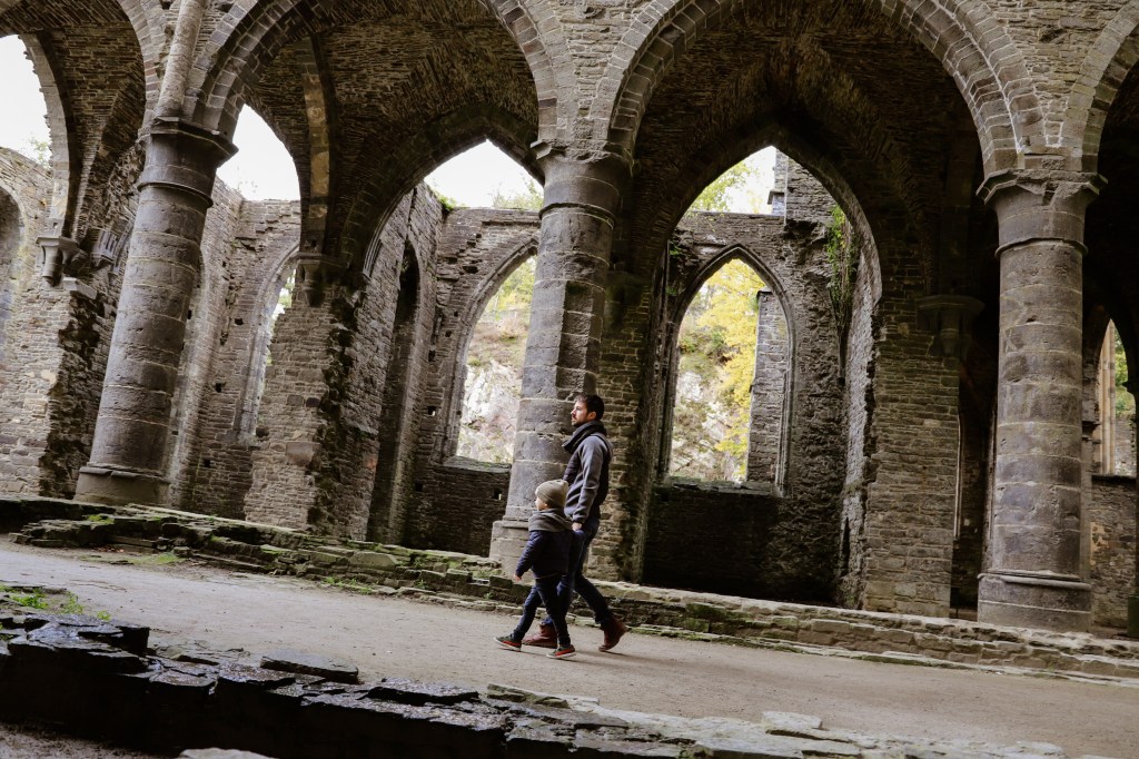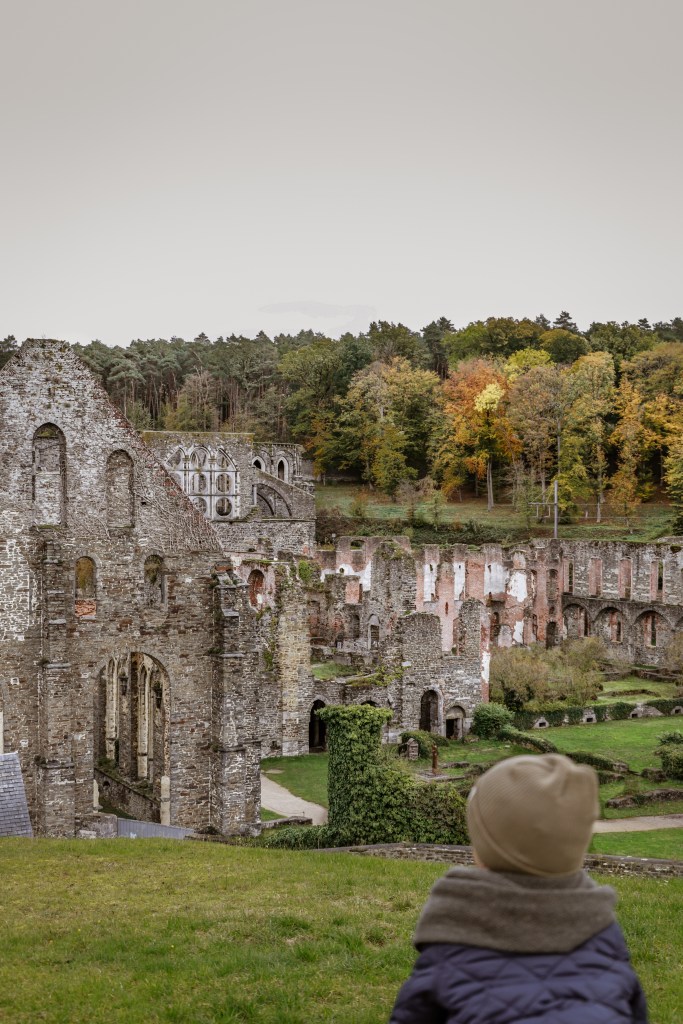 Habitués à l’abbaye de Maredsous, nous nous attendions plus ou moins au même environnement. Il n’en est rien puisqu’il s’agit d’une … ancienne abbaye. L’ensemble de la visite se fait en extérieur où vous pourrez vous rendre compte de l’impressionnante bâtisse qui se tenait là il y a près de 1000 ans (!). Les ruines sont remarquablement préservées. Fermez les yeux. Imaginez. Vous revoilà en l’an 1146.