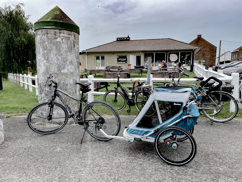 On accroche la remorque aux vélos (celui de papa pour être exact), on y charge les jeunes aventuriers et on monte sur le RaVeL direction le Lac de Bambois.