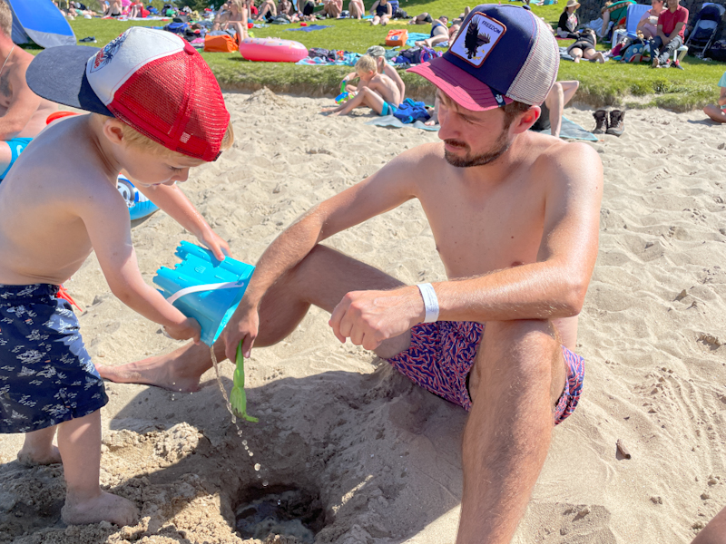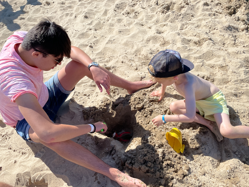 Mais finalement, pour les garçons, une pelle, un râteau, un peu de sable et l’eau, il n’en fallait pas davantage…