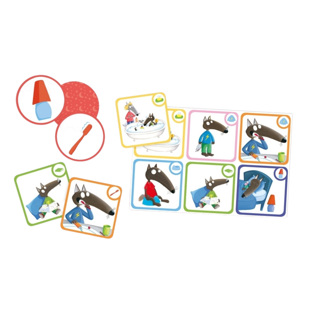 Jeu accessible pour les enfants à partir de 2 ans. P’tit Loup vous rappellera les rituels avant le coucher (l’histoire, le pyjama, …) au travers d’un jeu entre hasard et mémoire. A retrouver à la Fnac.