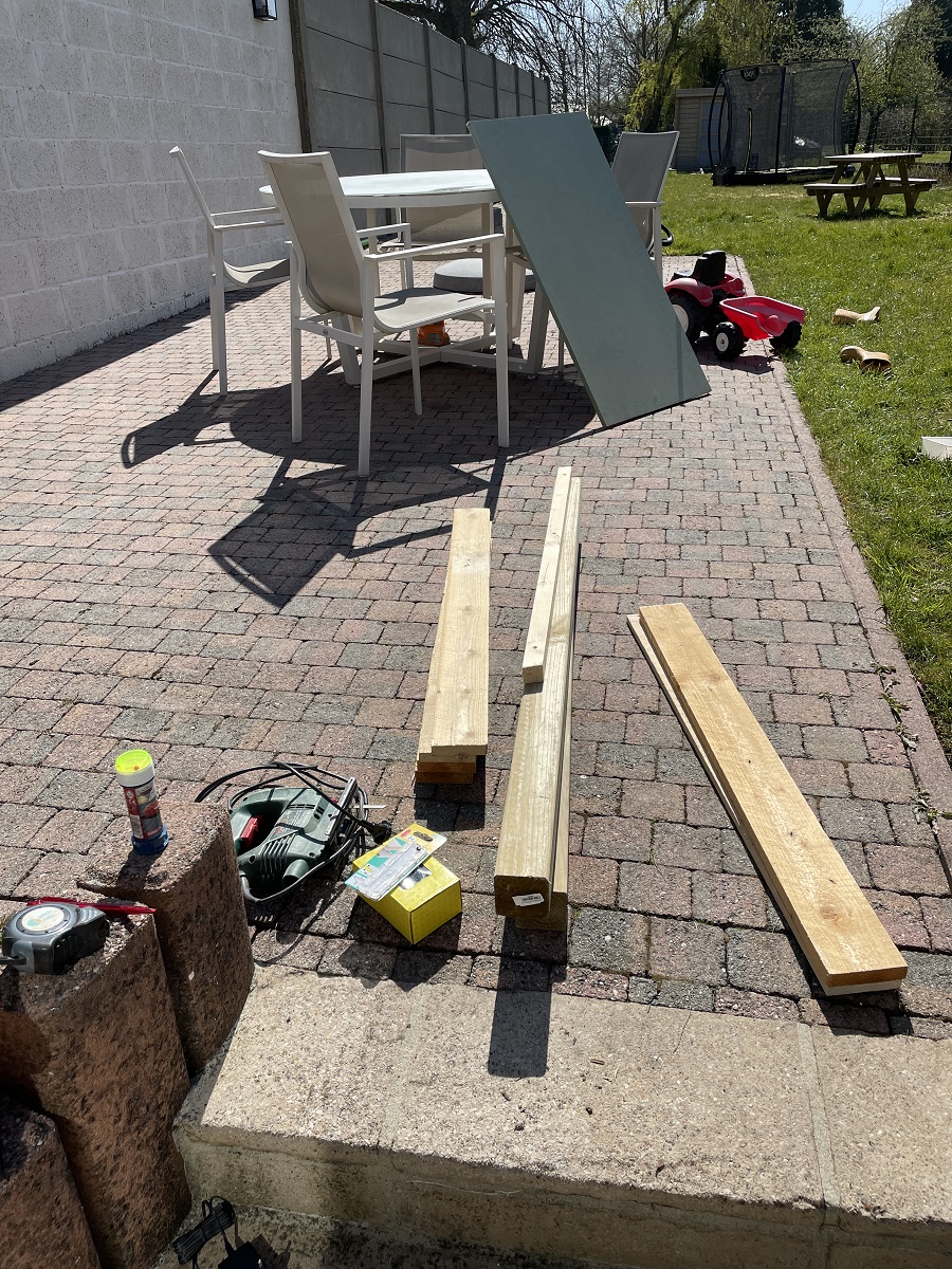 Un bac à sable, construit par Papa avec des planches de palette de récup. On vous présente le nôtre et vous prépare bientôt le DIY. Des heures d’amusement pour 10 EUR de matériel et 20kg de sable blanc.