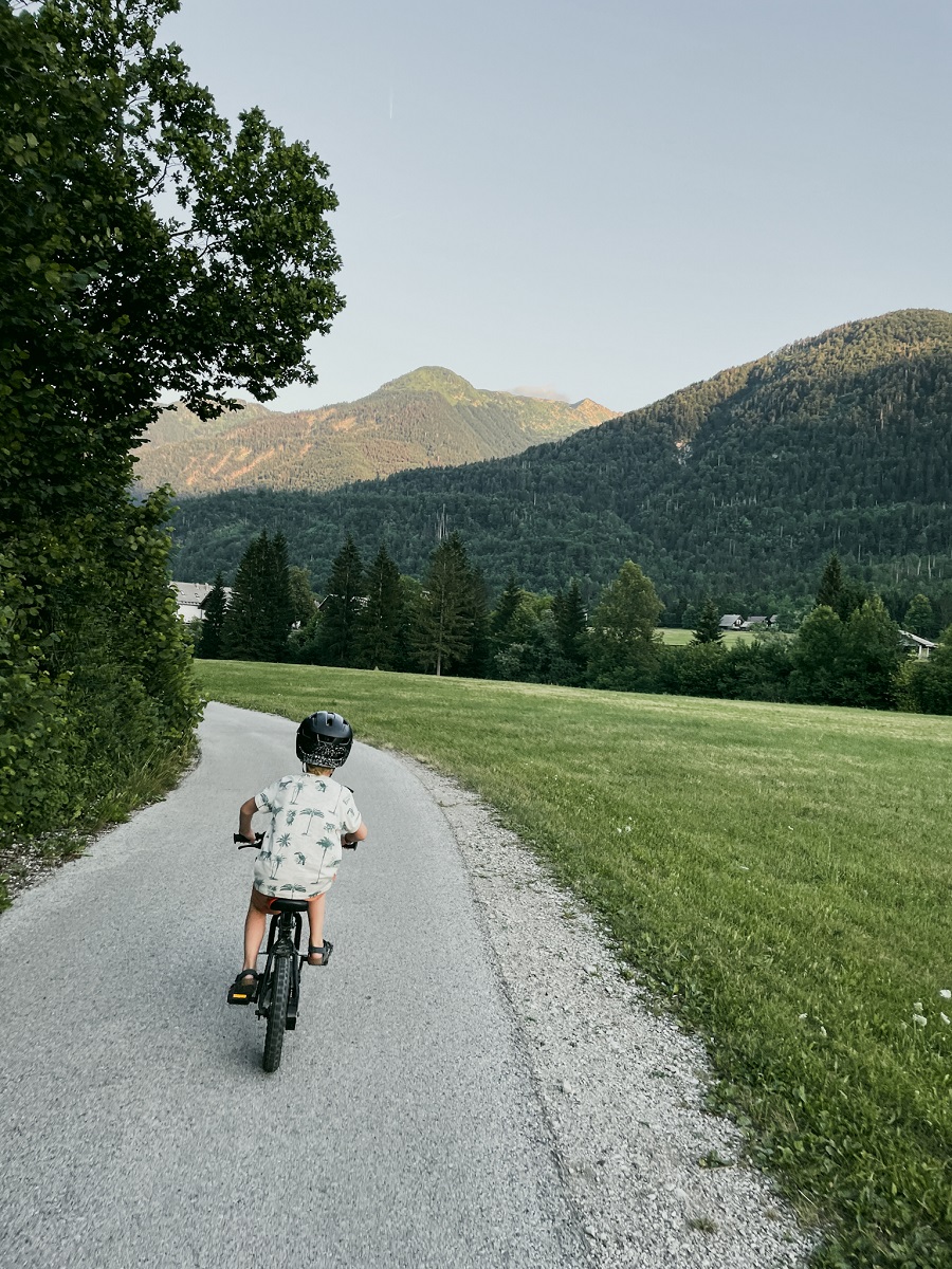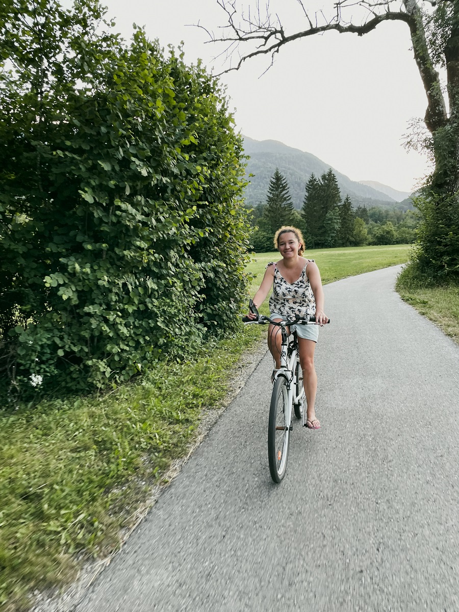 Une piste cyclable à travers champs, dans une vallée encerclée par les chaines de montagnes, vous visualisez? C’est ce que nous avons vécu pendant 7 km jusqu’au « Bohinjski Jezero ».
