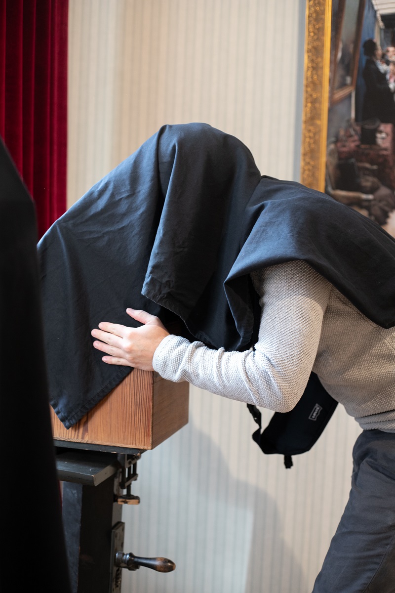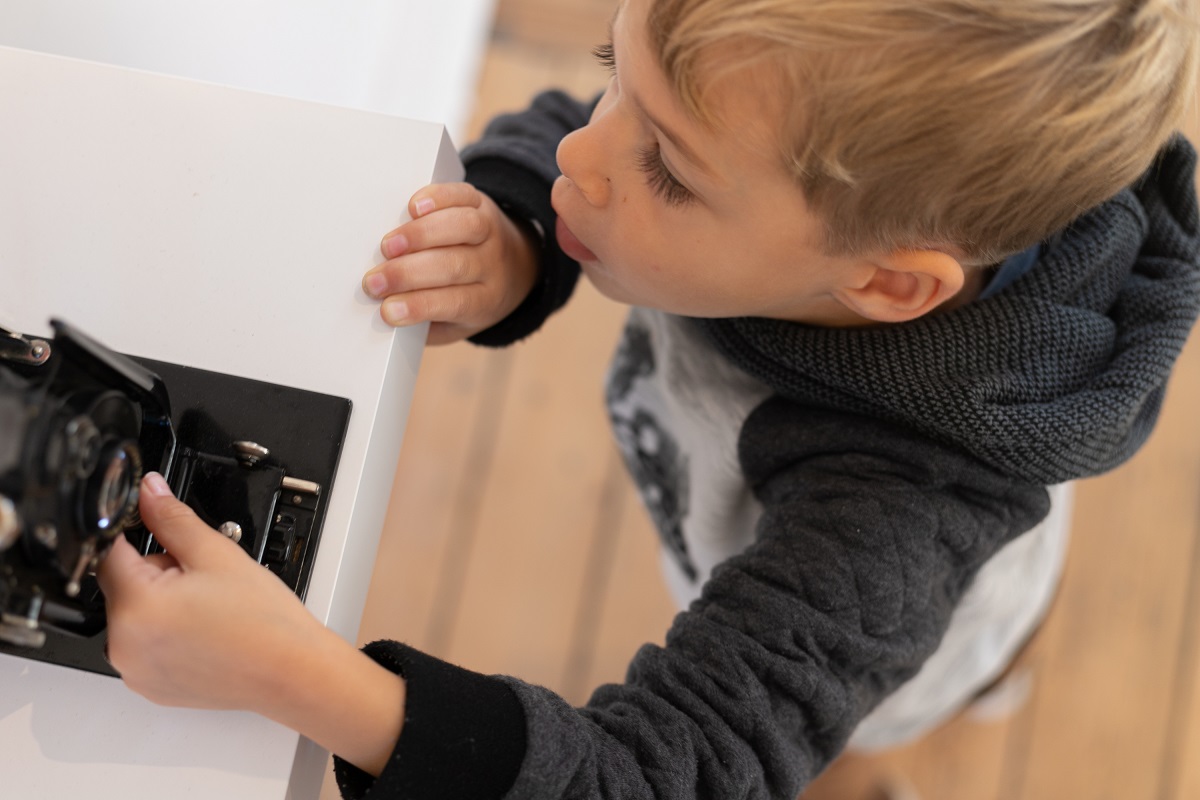 Jeux d’ombres et de lumières, découverte d’une chambre noire, illusions d’optiques, les parents aussi se prennent au jeu. Sans oublier un peu d’histoire de la photo (on est au musée quand même !).