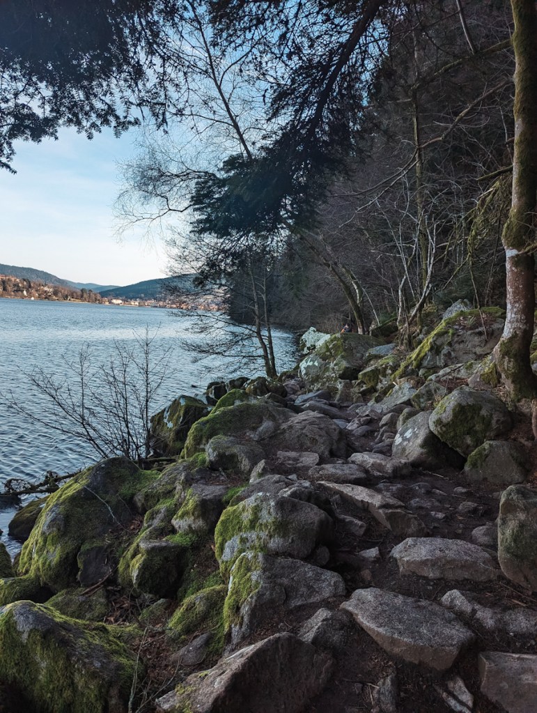 Départ depuis le parking du stade (Chemin du Tour du Lac à Gerardmer), un peu de bord de lac, puis ça grimpe!