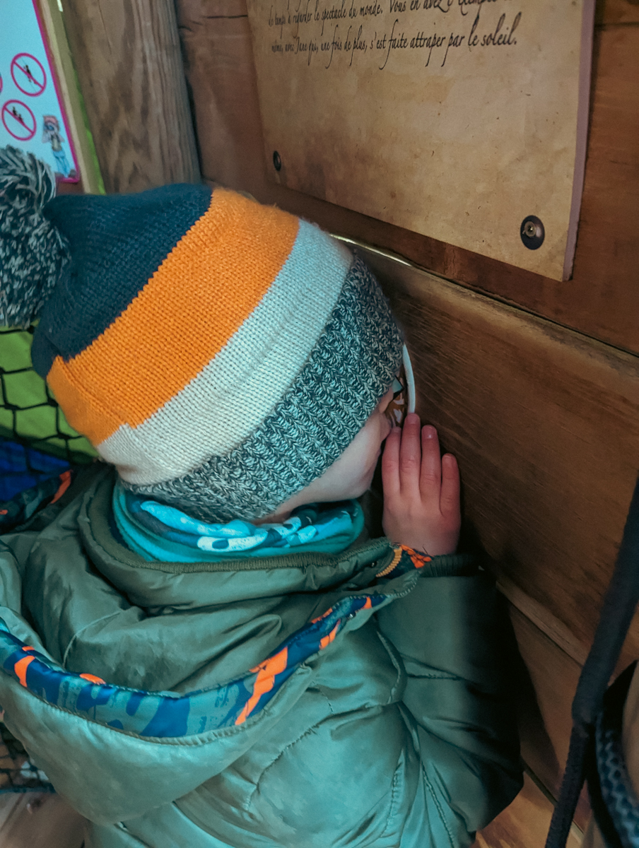 Et spécifiquement pour les plus jeunes ? Léo et Isaac nous parlent encore du Bois des Lutins. Il s’agit d’une série de parcours dans les arbres. Toboggans, trampolines, échelles, …