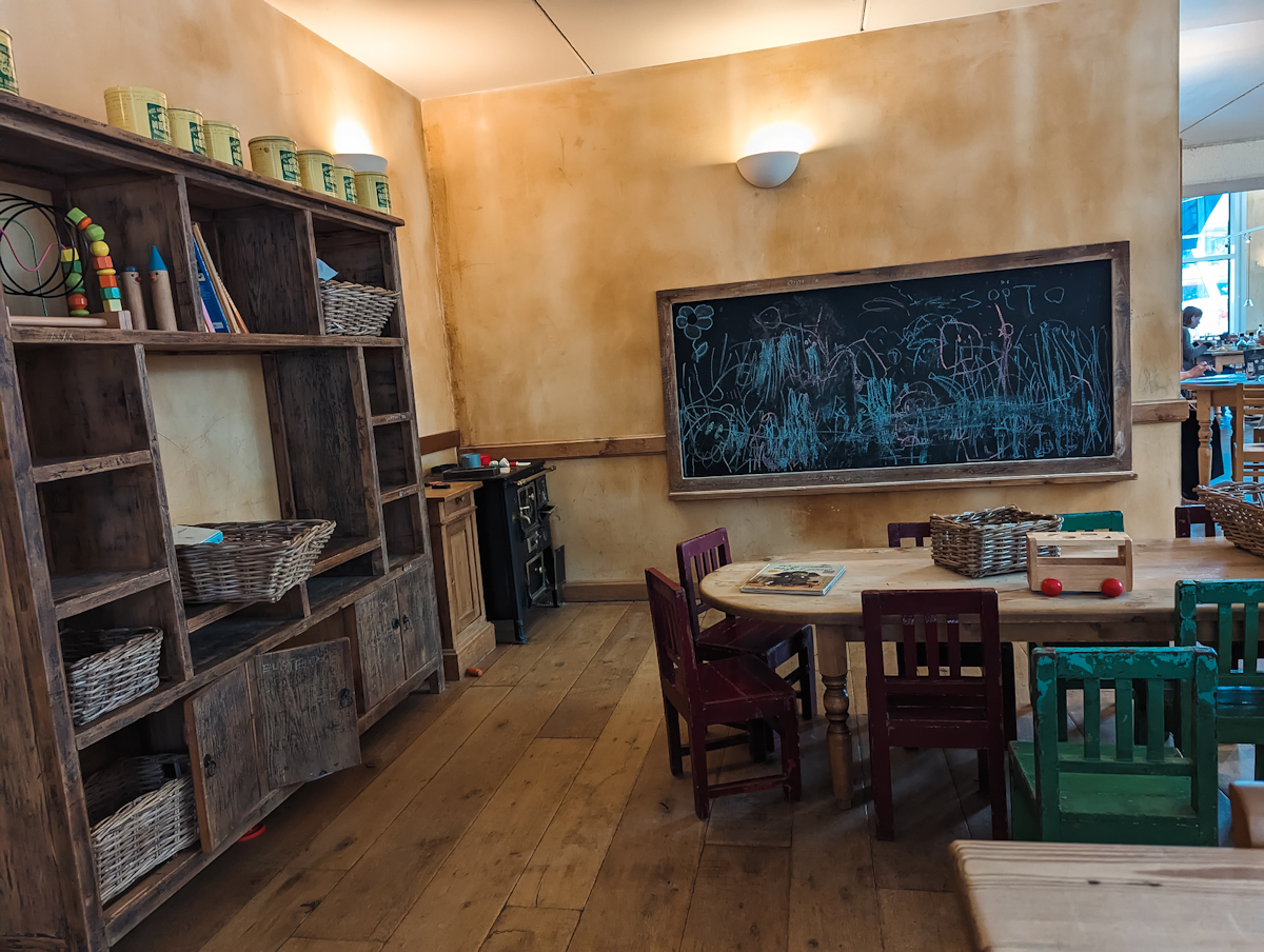 Pour le lunch, nous avons pu apprécier une soupe, une salade, une quiche, et une tartine. Zéro culpabilité. Et les garçons ont attendu les plats dans le coin enfants (grande table basse avec des jeux, coloriages, …). L’adresse testée est située à la sortie de la gare (Kievit), en face de l’hôtel Lindner. Il y a deux autres adresses à découvrir dans le centre.