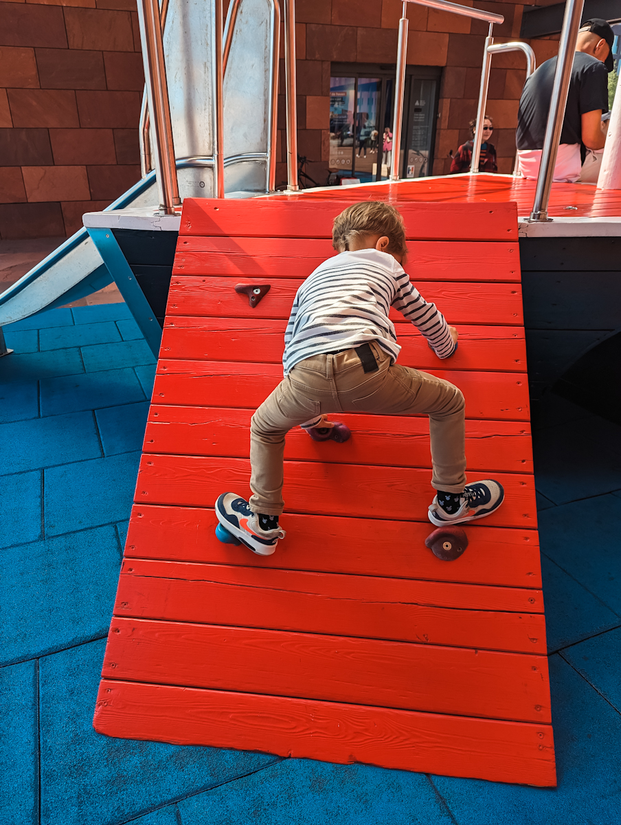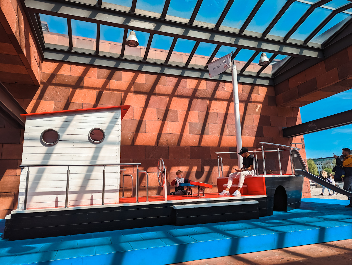 Vous retrouverez un espace adapté aux jeunes enfants à l’intérieur : coloriage, jeux, livres. Nous n’avons pas de photo. Sorry not sorry, on profitait du soleil. Par contre, il y a un bateau pour les jeunes matelots, à la sortie du MAS.