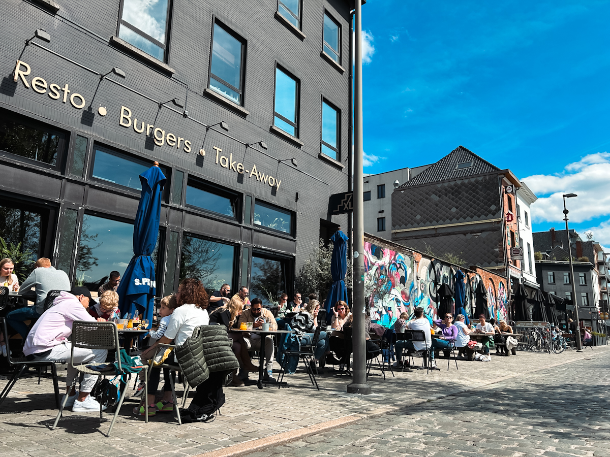 On a adoré cette ambiance de docks autour du MAS, et nous avons prolongé l’expérience avec un hamburger sur la terrasse du Burgerij Eilandje, le long du quai d’un bras de l’Escaut.