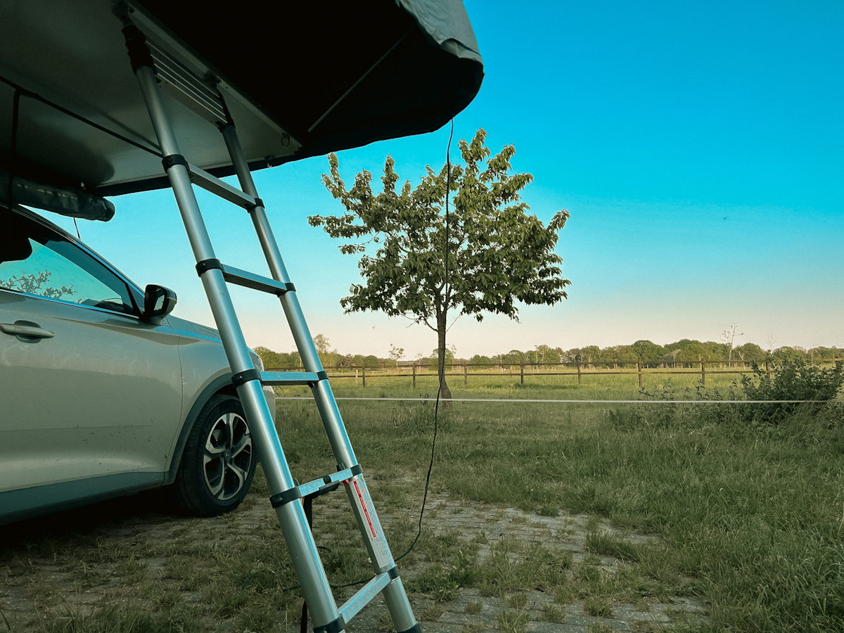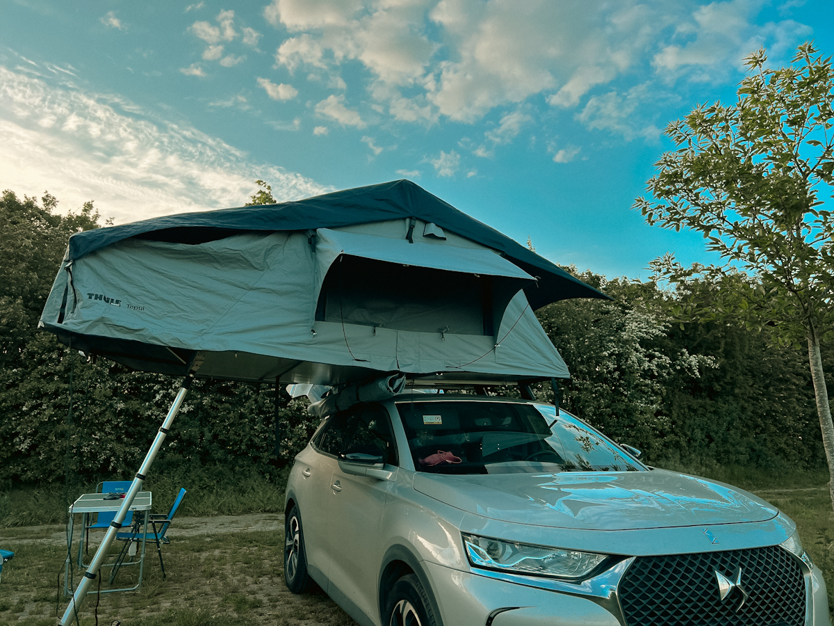 N’importe quelle voiture (ou presque) peut accueillir des barres de toit. On y attache alors la tente repliée.